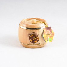 Мёд натуральный цветочный с преимуществом донника в деревянном бочонке 0,25кг