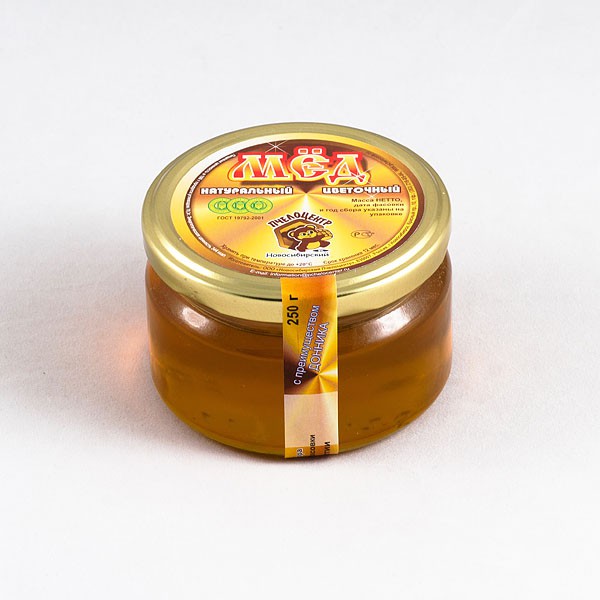 Мёд натуральный цветочный с преимуществом донника в стеклянной таре 0,25кг