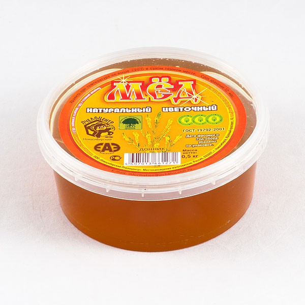 Мёд натуральный цветочный с преимуществом донника в пластиковой таре 0,5кг