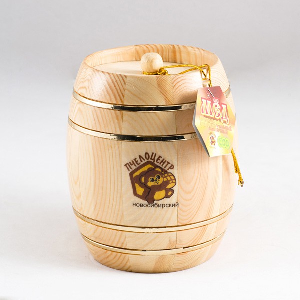 Мёд натуральный цветочный с преимуществом донника в деревянном бочонке 0,7кг